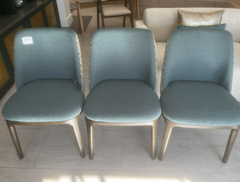 BLUE BOUCLE DINING CHAIRS W FABRIC BACK, £100 X3, SHOWROOM CLEARANCE