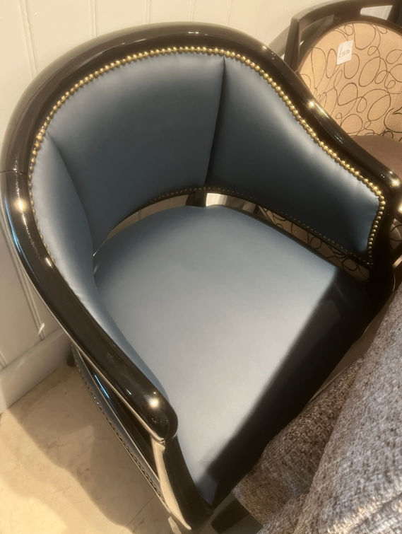 BLUE CHAIR W BRASS BUTTONING , £180 X1, SHOWROOM CLEARANCE