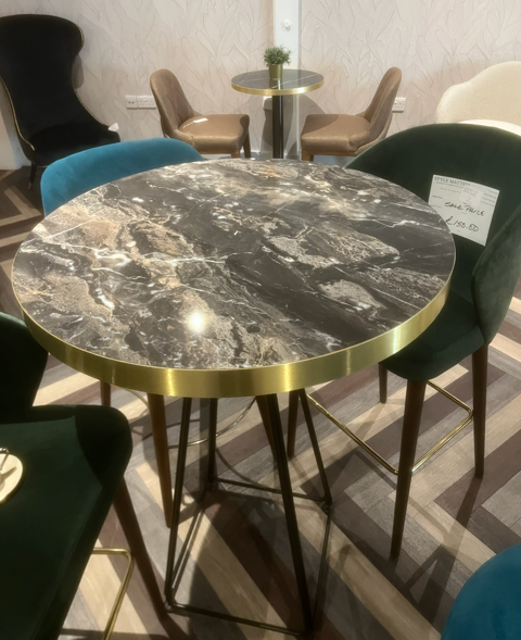 Circular Grey Marble Table w Gold Edging, £120 X1, SHOWROOM CLEARANCE