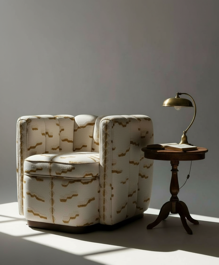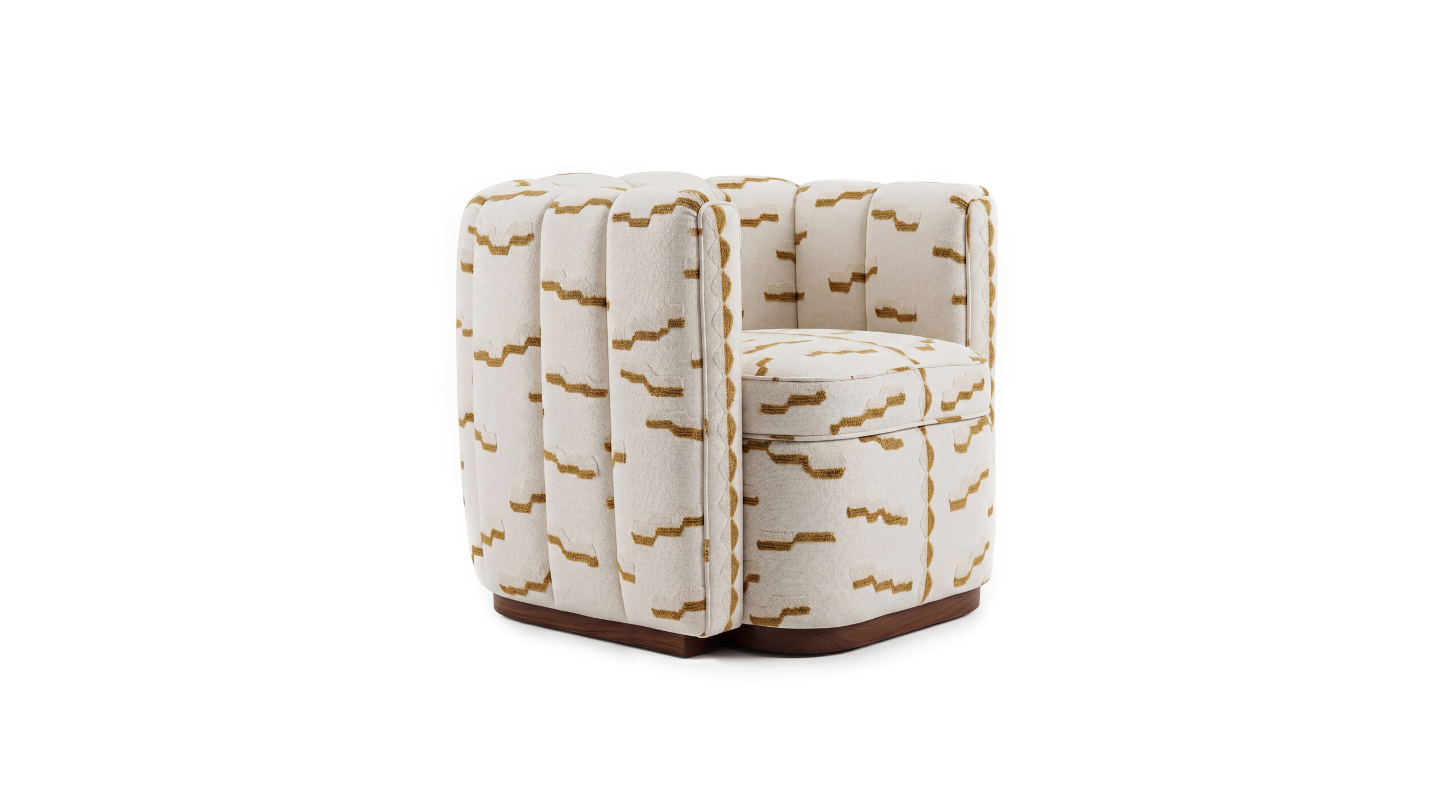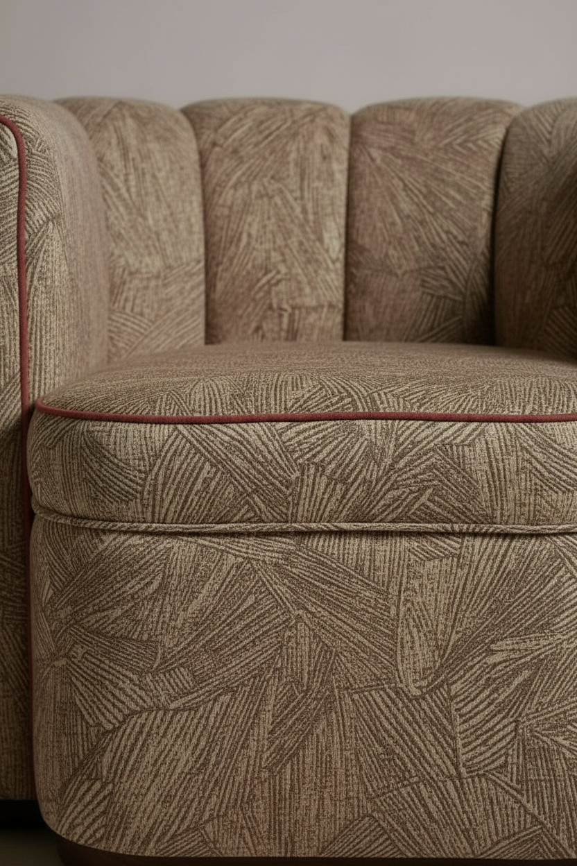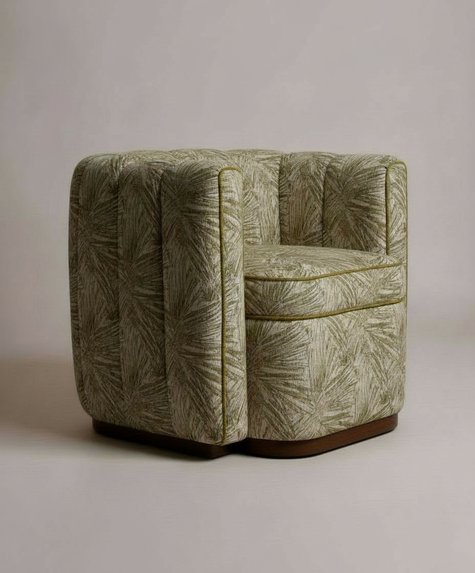 The Moby Armchair is a compact statement piece that combines sculptural form with exceptional comfort. Its bold silhouette is defined by vertically channelled upholstery that wraps around the body of the chair, creating depth, texture, and a strong architectural character.