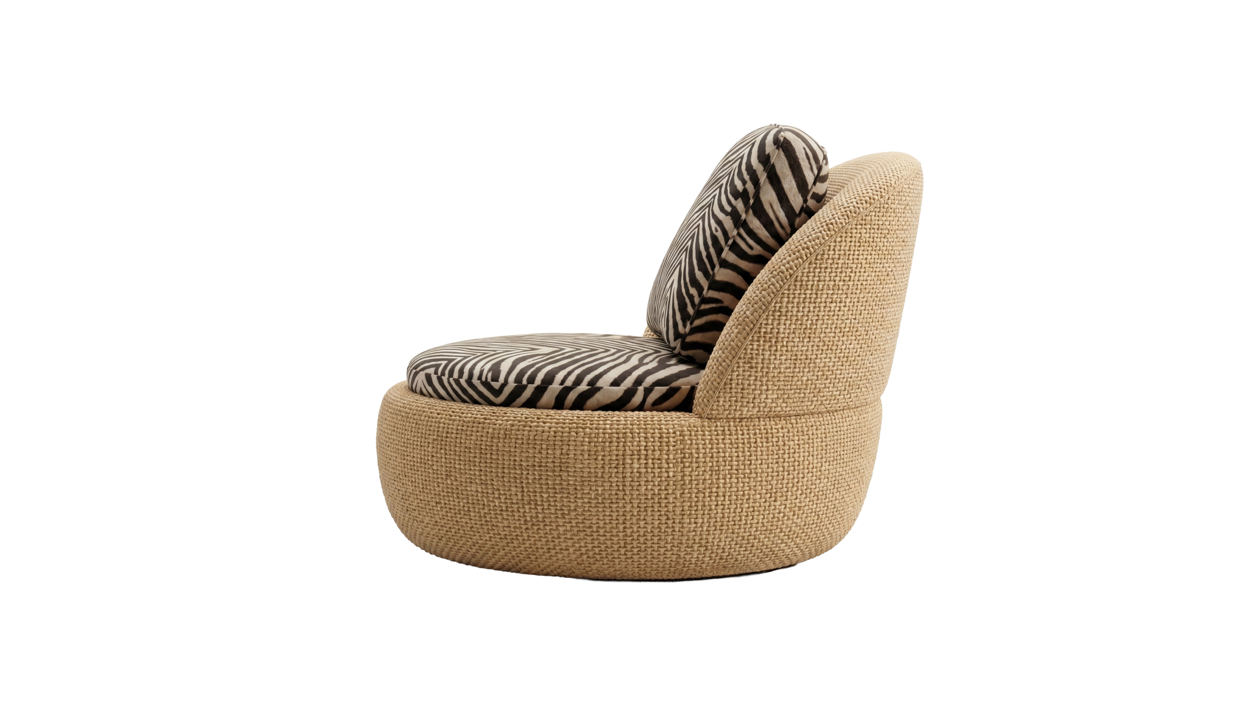 With its low profile and smooth, continuous curves, the chair offers a laid-back seating experience while maintaining a refined, sculptural presence. Generous proportions and a balanced silhouette make it ideal for quiet moments or casual gatherings.