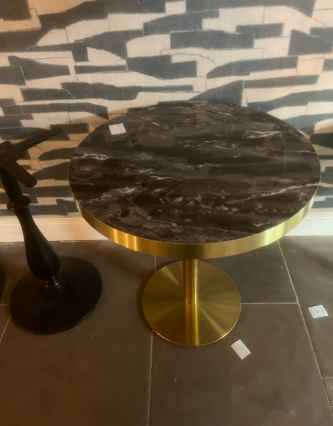 Petite Circular Dark Marble Table w Gold Edging & Gold Base, £120 X1, SHOWROOM CLEARANCE