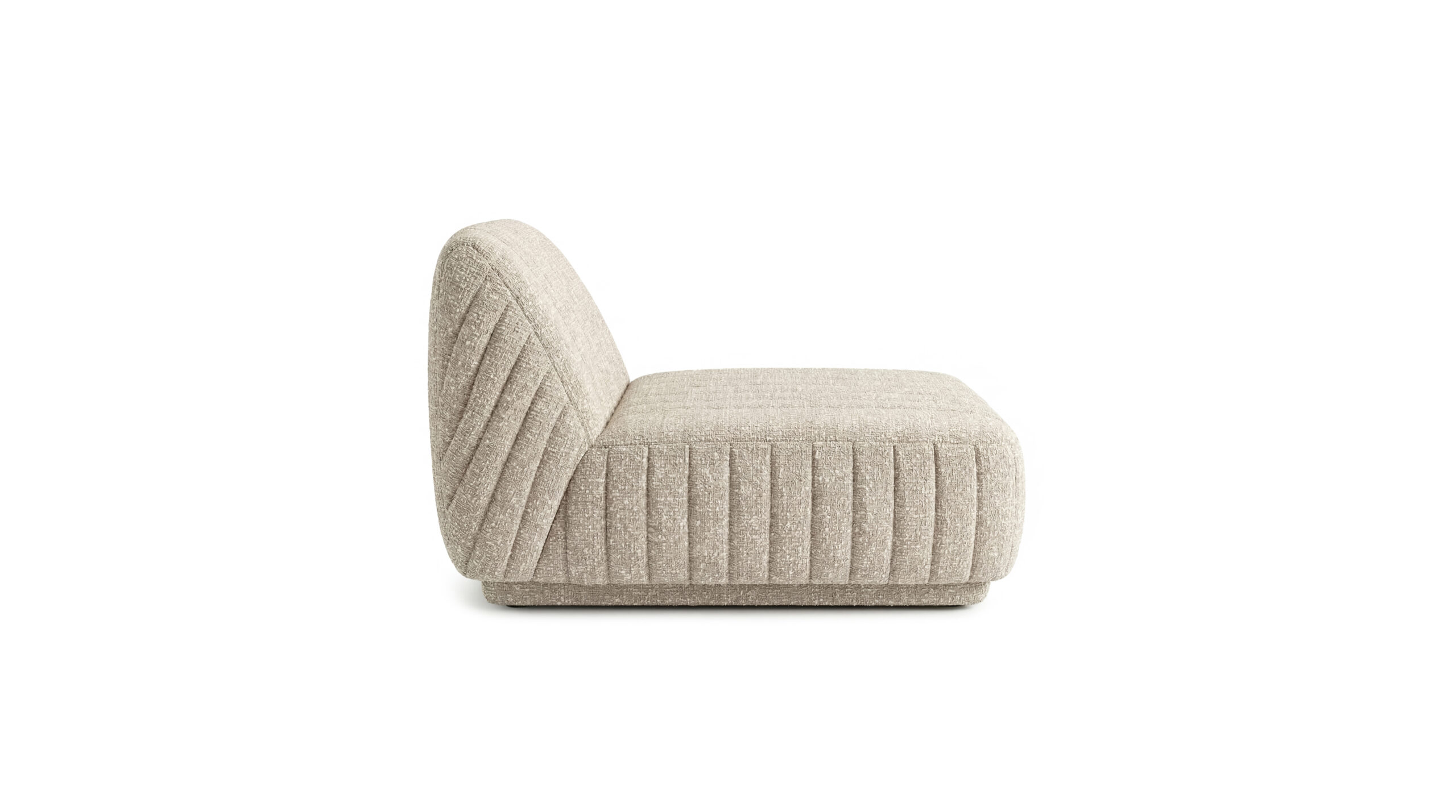 The Shell Lounger is designed for slow moments and effortless relaxation. Inspired by the gentle, enveloping form of a seashell, its low profile and flowing curves create a naturally supportive, reclined seating experience.