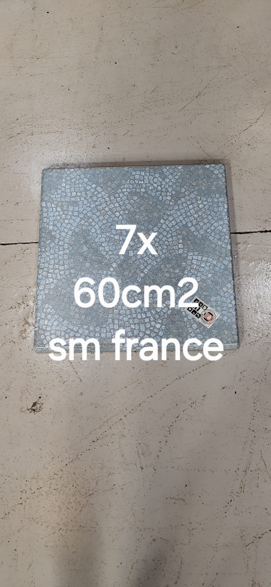 Sm France 600mm x 600mm table top blue mosiac pattern “final reduction £10.00 ea”