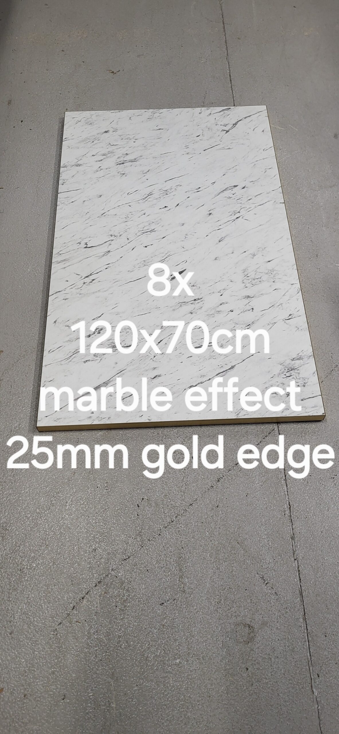 white Carrera table top with brass edge 1200×700 matt finish 25 mm deep