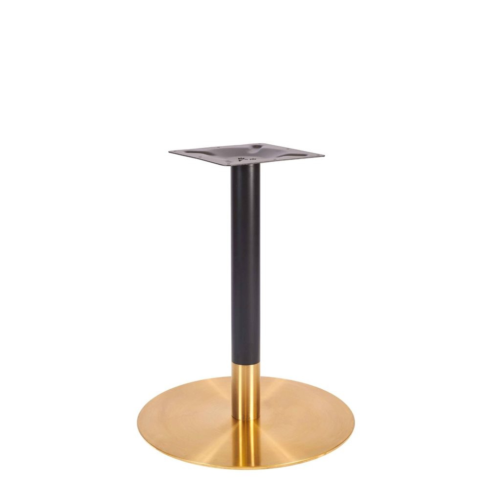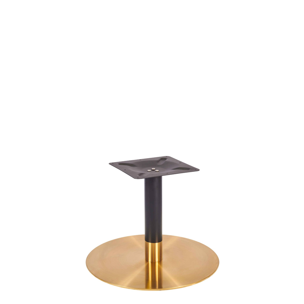 Zeus Small table base - 580 diameter base in brass and black finish. Available in 3 heights: 430mm, 720mm or 1100mm. Maximum table top sizes: 430mm height: max top size - 1000mm Table Top (63068) 720mm height:  max top size  - diameter 1000mm   or  900x900 Table Top (63069) 1000mm height: max top size - 600mm Table Top (63070)